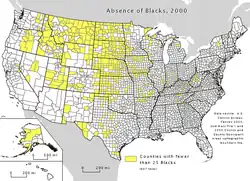 ![]() Proportion of Black Americans in each U.S. county, as of the 2020 U.S. census | |