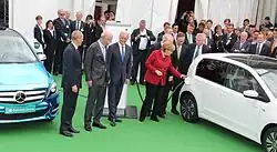 In the 2005 elections, Angela Merkel became the first female chancellor. In 2009, the German government approved a €50 billion stimulus plan.[114] Among the major German political projects of the early 21st century are the advancement of European integration, the country's energy transition (Energiewende) for a sustainable energy supply, the debt brake for balanced budgets, measures to increase the fertility rate (pronatalism), and high-tech strategies for the transition of the German economy, summarised as Industry 4.0.[115] During the 2015 European migrant crisis, the country took in over a million refugees and migrants.[116]