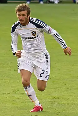 A wide midfielder, David Beckham was lauded for his range of passing, vision, crossing ability and bending free-kicks, which enabled him to create chances for teammates or score goals.[55][56][57]