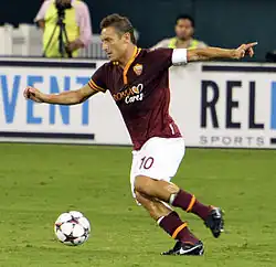 Italian offensive playmaker Francesco Totti in action for Roma in 2013