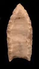 The Folsom tradition was characterized by the use of Folsom points as projectile tips and activities known from kill sites, where slaughter and butchering of bison took place. Folsom tools were left behind between 9000 BCE and 8000 BCE.[54]