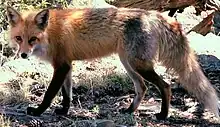 Red foxes colonised the North American continent in two waves: before and during the Illinoian glaciation, and during the Wisconsinan glaciation.[23] Gene mapping demonstrates that red foxes in North America have been isolated from their Old World counterparts for over 400,000 years, thus raising the possibility that speciation has occurred, and that the previous binomial name of Vulpes fulva may be valid.[24] In the far north, red fox fossils have been found in Sangamonian Stage deposits near the Fairbanks District, Alaska, and Medicine Hat, Alberta. Fossils dating from the Wisconsinan are present in 25 sites across Arkansas, California, Colorado, Idaho, Missouri, New Mexico, Ohio,[25] Tennessee, Texas, Virginia, and Wyoming. Although they ranged far south during the Wisconsinan, the onset of warm conditions shrank their range toward the north, and they have only recently reclaimed their former North American ranges because of human-induced environmental changes.[26] Genetic testing indicates that two distinct red fox refugia exist in North America, which have been separated since the Wisconsinan. The northern (or boreal) refugium occurs in Alaska and western Canada, and consists of the larger subspecies V. v. alascensis, V. v. abietorum, V. v. regalis, and V. v. rubricosa. The southern (or montane) refugium occurs in the subalpine parklands and alpine meadows of the west, from the Rocky Mountains to the Cascades and the Sierra Nevada ranges, consisting of the smaller subspecies V. v. cascadensis, V. v. macroura, V. v. necator, and V. v. patwin. The latter clade has been separated from all other red fox populations since at least the last glacial maximum, and may possess unique ecological or physiological adaptations.[23]