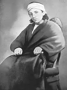 Ásíyih K͟hánum (Persian: آسیه خانم 1820 – 1886) was the first wife of Baháʼu'lláh, the founder of the Baháʼí Faith. She is also known by her titles of Navváb, the Most Exalted Leaf, Búyúk K͟hánum or Hadrat-i-K͟hánum. K͟hánum is a title usually given to a Persian lady and is equivalent to madam[1] or dame.[2] Baháʼu'lláh and Ásíyih Khánum were known as the Father of the Poor and the Mother of Consolation for their extraordinary generosity and regard for the impoverished. Baháʼu'lláh, along with Ásíyih Khánum and her children, are regarded as the Baháʼí holy family.