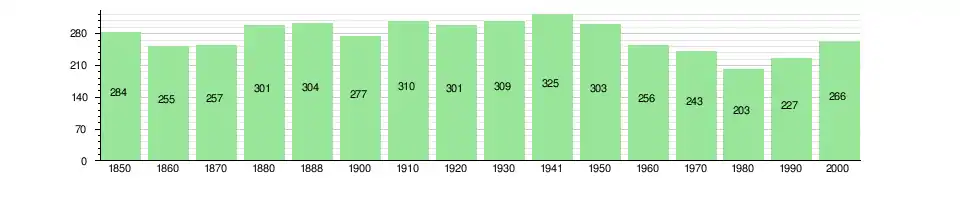 Ecublens has a population (as of December 2020) of 356.[8] As of 2008, 6.1% of the population are resident foreign nationals.[9] Over the last 10 years (2000–2010) the population has changed at a rate of 5.3%. Migration accounted for 3%, while births and deaths accounted for 3.8%.[10]