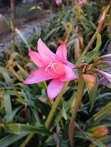 The scientific name × Amarcrinum is applied to those hybrid plants obtained from artificial crosses between the genera Amaryllis and Crinum,[1] although as of March 2014, the World Checklist of Selected Plant Families regards the name as "unplaced".[2] They are grown as ornamental plants in gardens.