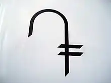 After its proclamation of independence, Armenia put into circulation its own national currency, the Armenian dram, and the need for a monetary sign became immediately apparent. The shape chosen is a slightly modified version of one of the capital letters of the Armenian alphabet.
