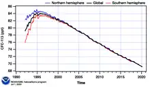 CFC-113 is one of the three most popular CFCs, along with CFC-11 and CFC-12.[17]