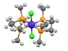 Structure of trans-CoCl2(dmpe)2 (P is ochre, Co. is blue, Cl is green).