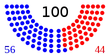 | Beginning of next congress | 57 | 43 | 100 | 0 |