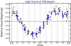 ![]() The visual band light curve of 108 Aquarii, showing the variation over the star's 3.7352 day rotation period. Adapted from Adelman (1999)[1] | |