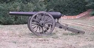 ![]() A 4.5-inch siege (ordnance) rifle (sometimes mistakenly called a "Rodman gun"). Four of these were issued to the 11th Indiana Battery at Louisville in February 1862.[1] | |