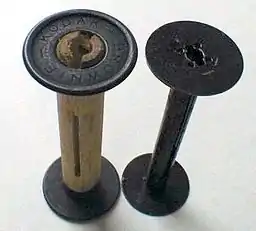 The 120 film format is a roll film which is nominally between 60.7 mm and 61.7 mm wide. Most modern films made today are roughly 61 mm (2.4 inches) wide. The film is held in an open spool originally made of wood with metal flanges, later with all-metal, and finally with all-plastic. The length of the film is nominally between 820 millimetres (32 in) and 850 millimetres (33 in), according to the ISO 732:2000 standard. However, some films may be as short as 760 millimetres (30 in).[1] The film is attached to a piece of backing paper longer and slightly wider than the film. The backing paper protects the film while it is wound on the spool, with enough extra length to allow loading and unloading the roll in daylight without exposing any of the film. Frame number markings for three standard image formats (6×4.5, 6×6, and 6×9 [4:3, 1:1, and 2:3 aspect ratios]; see below) are printed on the backing paper.
