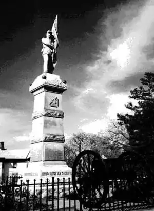 Organized at Camp Kelly on the fairgrounds in Hudson, New York (a marker can be found today in the town indicating the location of the camp). The regiment was mustered into service on September 4, 1862, and left for Washington, D.C., September 5, 1862, aboard the steamship Oregon which took them to New York City. From here the regiment rode aboard railroad cars to Baltimore. Camp Millington, where the regiment practiced drill, was set up just outside Baltimore. The 128th's first attempt to engage the enemy took them on a rapid jaunt to Gettysburg in an effort to confront General J.E.B. Stuart's Confederates. This proved uneventful however as Stuart retreated upon learning of the Union Army's approach; History would not be made in Pennsylvania until the following year.