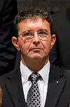 After the resignation of Alenka Bratušek's cabinet, President Borut Pahor determined that the new elections would take place on 13 July 2014. With 34.49% Cerar won by the highest percentage on any parliamentary elections since Independence. It was decided not to cooperate with the Slovenian Democratic Party (SDS), as its leader Janez Janša was sentenced to two years imprisonment.[1] On 28 July 2014 Cerar sent an outline of the coalition agreement to all other parties that attended the coalition talks. The first to agree was the president of Democratic Party of Pensioners of Slovenia (DeSUS) Karel Erjavec, with whom Cerar gathered the necessary 45+ seats in Parliament. The next and last to join the coalition was Dejan Židan with his Social Democrats (SD) party.[2] The coalition agreement was signed on 3 September 2014.
