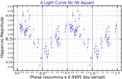 14 Aquarii (abbreviated 14 Aqr) is red giant star. 14 Aquarii is the Flamsteed designation; it also bears the variable star designation IW Aquarii. It is a semiregular variable with an amplitude of a tenth of a magnitude, and shows variations on a timescale of just one day.[4]