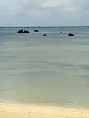 Sawada beach on Shimoji island. The rocks are believed to be remnants of the tsunami