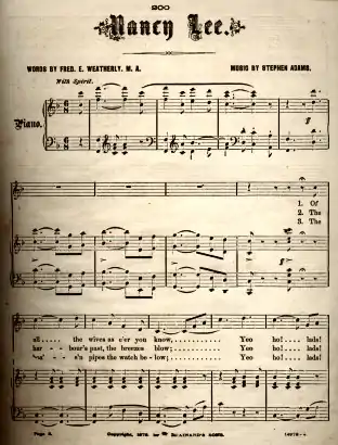 - "Nancy Lee" w. Frederic Edward Weatherly, m. Stephen Adams (pseudonym of Michael Maybrick)