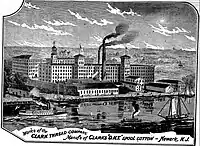 Clark ONT, established in 1883, played at their association ground in the rear of the Kearny Mills. They wore crimson jerseys, white knickerbockers, and crimson stockings. Paterson wore blue and white striped jerseys, white knickerbockers, and blue stockings. The Domestics, also having blue and white for colors, were composed of employees of the Domestic Manufacturing Company and played at their counterparts baseball ground at Williams Hill. However, in March 1885 the Domestic company no longer allowed the baseball club to use that name so they simply became the Newark baseball club and their field also became Newark baseball grounds aka Emmett street grounds. The Kearny Rangers were a football and cricket club established in 1883 with navy shirts and white shorts. The participants hailing from three different cities were as follows: