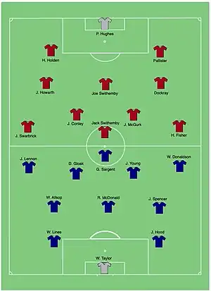 Paterson: GK Dowey, DF B.Henshall(c), J.Hall, MF G.Henshall, E.Gaskell, J.Henshall, FW W.Wyatt, William Turner, J.W.Warburton, S.Wardle, R.McWilliams. Trenton: GK W.Bradshaw, DF R.Rhodes, Holowan, MF T.McNicol, T.Baddeley, J.James, FW J.Bradshaw, E.Naylor, E.Ward, A.Dearden, D.Baggeley.