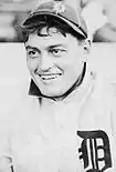 First baseman Claude Rossman played for the Tigers from 1907 to 1909. In 1907, Rossman hit .277 and had 69 RBIs—third most on the team after Cobb and Crawford. Rossman had a peculiar emotional quirk where he sometimes froze and could not throw the ball when he became excited. Runners would lead off first to draw a throw from the pitcher, then run to second when Rossman froze.[4] He was 28 when he played his last major league game and died at age 46 in a New York hospital for the insane where he had been a patient for several years.
