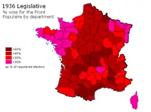 Legislative elections were held in France on 26 April and 3 May 1936, the last elections before World War II. The number of candidates set a record, with 4,807 running for election to the Chamber of Deputies. In the Seine Department alone, there were 1,402 candidates.[1]