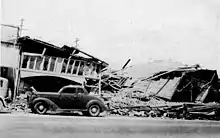 The 1940 El Centro earthquake (or 1940 Imperial Valley earthquake) occurred at 21:35 Pacific Standard Time on May 18 (05:35 UTC on May 19) in the Imperial Valley in southeastern Southern California near the international border of the United States and Mexico. It had a moment magnitude of 6.9 and a maximum perceived intensity of X (Extreme) on the Mercalli intensity scale. It was the first major earthquake to be recorded by a strong-motion seismograph located next to a fault rupture.[4] The earthquake was characterized as a typical moderate-sized destructive event with a complex energy release signature.[5] It was the strongest recorded earthquake in the Imperial Valley, causing widespread damage to irrigation systems and killing nine people.[3]