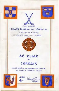 The 1952 All-Ireland Senior Hurling Championship Final was the 65th All-Ireland Final and the culmination of the 1952 All-Ireland Senior Hurling Championship, an inter-county hurling tournament for the top teams in Ireland. The match was held at Croke Park, Dublin, on 7 September 1952, between Cork and Dublin. The Leinster champions lost to their Munster opponents on a score line of 2-14 to 0-7.