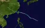 A cold core low developed tropical characteristics and became Tropical Depression 8W on July 6. It tracked westward, becoming a tropical storm later that day and a typhoon on July 7. After briefly weakening to a tropical storm, Clara re-attained typhoon status, and it peaked in intensity on July 10, reaching winds of 115 mph. Clara weakened to a 90 mph typhoon just before hitting Taiwan on the 11th, and it dissipated over China the next day. Clara's heavy rains caused 69 fatalities and a further 32 people to be reported as missing.