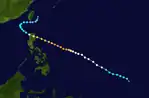 Typhoon Violet, which formed on April 1, steadily weakened from its peak of 140 mph to directly impact northeastern Luzon as a 115 mph typhoon on the 8th. It dissipated in the South China Sea on April 12 without causing any significant damage.