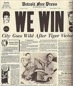In a column published on October 11, 1968, Detroit's senior baseball writer, Joe Falls, described the impact of the Tigers championship on the city.