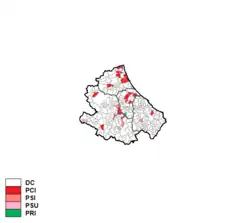 Christian Democracy was by far the largest party, gaining more than twice the share of vote of the Italian Communist Party, which came distantly second. The position of President of Abruzzo was held by Ugo Crescenzi (1970–1972), Giustino De Cecco (1972–1973), Ugo Crescenzi (1973–1974) and again Ugo Crescenzi (1974–1975), all Christian Democrats.