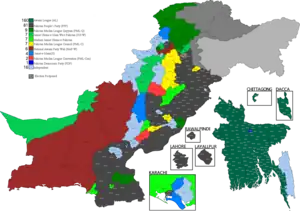 General elections were held in Pakistan on 7 December 1970 to elect members of the National Assembly. They were the first general elections since the independence of Pakistan and ultimately the only ones held prior to the independence of Bangladesh. Voting took place in 300 general constituencies, of which 162 were in East Pakistan and 138 in West Pakistan. A further thirteen seats were reserved for women (seven of which were in East Pakistan and six of which were in West Pakistan), who were to be elected by members of the National Assembly.[1]