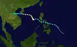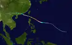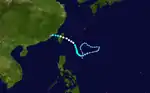 On April 23 Tropical Storm Wanda began its life to the east of the Philippines. It tracked over the archipelago, and emerged into the South China Sea on the 25th. It turned to the northwest, and became a typhoon on May 1 just off the coast of South Vietnam. The westerlies brought Wanda to the north and northeast, where it weakened until dissipating on the 4th near Hainan Island.