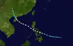 | Faye (Krising) | October 4 – 15 | Severe tropical storm | 985 hPa (29.09 inHg) | Philippines | Unknown | 13 | ||