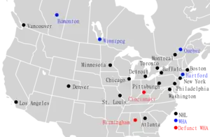 The four surviving WHA teams paid the Stingers and Bulls $1.5 million apiece in parachute payments. Cincinnati and Birmingham and joined the Central Hockey League, the league-owned minor league, for one season each.[4][11] The Stingers folded after 33 games; the Bulls played two full seasons before folding. Major pro hockey has yet to return to Cincinnati or Birmingham, though the NHL did place teams in the nearby markets of Columbus and Nashville in the late 1990s.