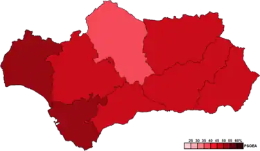 ![]() Constituency results map for the Parliament of Andalusia | ||||||||||||||||||||||||||||||||||||||||||||||||||||||||||||||||||||||||||||||||||