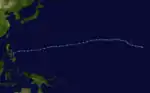 Before dissipating, the remnants of Winona tracked through the Philippines; however, no known impact resulted from its passage. Throughout its nearly two week existence, Winona traveled approximately 10,185 km (6,329 mi) across the Pacific Ocean.[5]