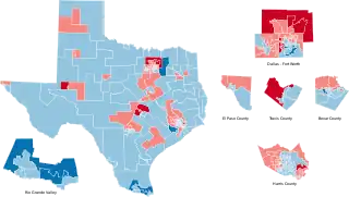 Despite Republican George H. W. Bush's victory in Texas in the concurrent presidential election, Republicans made no net gains over the Democrats in the Texas House.[8] A large number of retirements and primary defeats led to a turnover of over 30 House members.[9] In Harris County, a narrow election result in District 144 led to a contested election between Democrat Donald Fogo and Republican Robert Talton. Early ballots had Fogo in the lead, but later counts gave the lead to Talton. A recount confirmed Talton's victory, but Fogo contested the election.[10] A special panel in the Texas House later upheld Talton's victory, flipping the seat to the Republicans.[11]