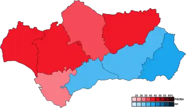 ![]() Constituency results map for the Parliament of Andalusia | ||||||||||||||||||||||||||||||||||||||||||||||||||||||||||||||||||||||||||||||||||
