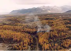 The Alaska Boeing E-3 Sentry accident was the September 22, 1995 crash of a United States Air Force Boeing E-3 Sentry airborne early warning aircraft with the loss of all 24 crewmembers on board.[2] The aircraft, serial number 77-0354 with callsign Yukla 27, hit birds on departure from Elmendorf Air Force Base in Alaska, United States. With the loss of thrust from both of the left engines the aircraft crashed into a wooded area less than a mile from the end of the runway.[1]