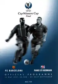 The 1997 UEFA Cup Winners' Cup Final was a football match contested between Barcelona of Spain and the cup holders Paris Saint-Germain of France, to determine the winner of the 1996–97 UEFA Cup Winners' Cup and the 37th overall Cup Winners' Cup final. It was held at Feijenoord Stadion in Rotterdam on 14 May 1997. Barcelona won the match 1–0 thanks to a Ronaldo penalty. The final saw the last instance of the Cup Winners' Cup "jinx" that no club had successfully retained the cup in successive seasons — with Paris Saint-Germain failing to defend the trophy that they won in 1996.