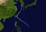 Tropical Storm Waldo developed on September 18. It moved northward and struck Japan before dissipating on September 21.