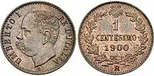 - ↑ "1 centesimo del Regno d'Italia, Umberto I". Archived from the original on 12 May 2019. Retrieved 12 May 2019.