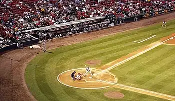Sammy Sosa at bat during a September 2000 away game against the season's eventual National League Central Division champions St. Louis Cardinals at Busch Memorial Stadium.