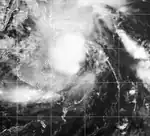 A tropical depression formed in the South China Sea on May 28,[9] given the name "Dagul" by PAGASA.[25] The JTWC never anticipated significant strengthening,[27] and the system largely consisted of convection displaced to the southeast of a broad circulation.[25] A ridge to the southeast steered the depression to the northeast, and on May 30 the depression made landfall in southwestern Taiwan. The combination of land interaction and wind shear caused dissipation that day.[9]