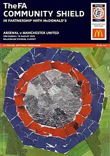 The 2003 FA Community Shield (also known as The FA Community Shield in partnership with McDonald's for sponsorship reasons) was the 81st staging of the FA Community Shield, an annual football match contested by the reigning champions of the Premier League and the holders of the FA Cup. It was held at Cardiff's Millennium Stadium on 10 August 2003. The match pitted Manchester United, champions of the 2002–03 Premier League against Shield holders Arsenal, who beat Southampton 1–0 in the 2003 FA Cup final. Manchester United won the Shield 4–3 on penalties, as neither side could be separated after a 1–1 draw in 90 minutes.
