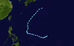 On March 4, a tropical depression formed out of a wave close to the equator southeast of Palau. The JTWC upgraded it to Tropical Storm 01W at 3 p.m. UTC the same day. The JTWC downgraded it back to a depression on March 5 due to shear, and it never regained tropical storm strength before dissipating on March 7.[14]