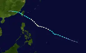 Heavy rainfall in Taiwan caused flooding and four minor injuries. Rain also fell heavily in the northern Philippines.[25] The storm has also killed at least 32 people in China, while another 60 people are missing. Agricultural losses in Taiwan amounted to NT$73 million (US$2.2 million).[26] Total damages from the storm amounted to $450 million.