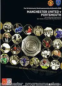 The 2008 FA Community Shield (also known as The FA Community Shield sponsored by McDonald's for sponsorship reasons) was the 86th staging of the FA Community Shield, an annual football match played between the reigning Premier League champions and FA Cup winners. The match was played on 10 August 2008 between 2007–08 Premier League champions Manchester United and 2007–08 FA Cup winners Portsmouth as the "curtain-raiser" to the 2008–09 English football season.[2] The match marked the 100th year since the first Charity Shield, also won by Manchester United after a replay in August 1908.