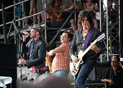According to Dean DeLeo, steps toward a reunion started with a simple phone call from Weiland's then-wife, Mary Forsberg.[3] She would later invite the DeLeo brothers to play at a private beach party, which led to the reconciliation of Weiland and the DeLeo brothers.[3] In 2007 Dean DeLeo discussed with Weiland an offer from a concert promoter to headline several summer festivals.[4] Weiland accepted and said he had cleared the brief tour with his Velvet Revolver bandmates.[4] Weiland said "everything was cool. Then it wasn't", and stated that the rest of the band stopped talking to him.[4] As a result, Weiland announced in the middle of a Velvet Revolver show on March 21, 2008 in Glasgow that it would be his last performance with the group.[4]